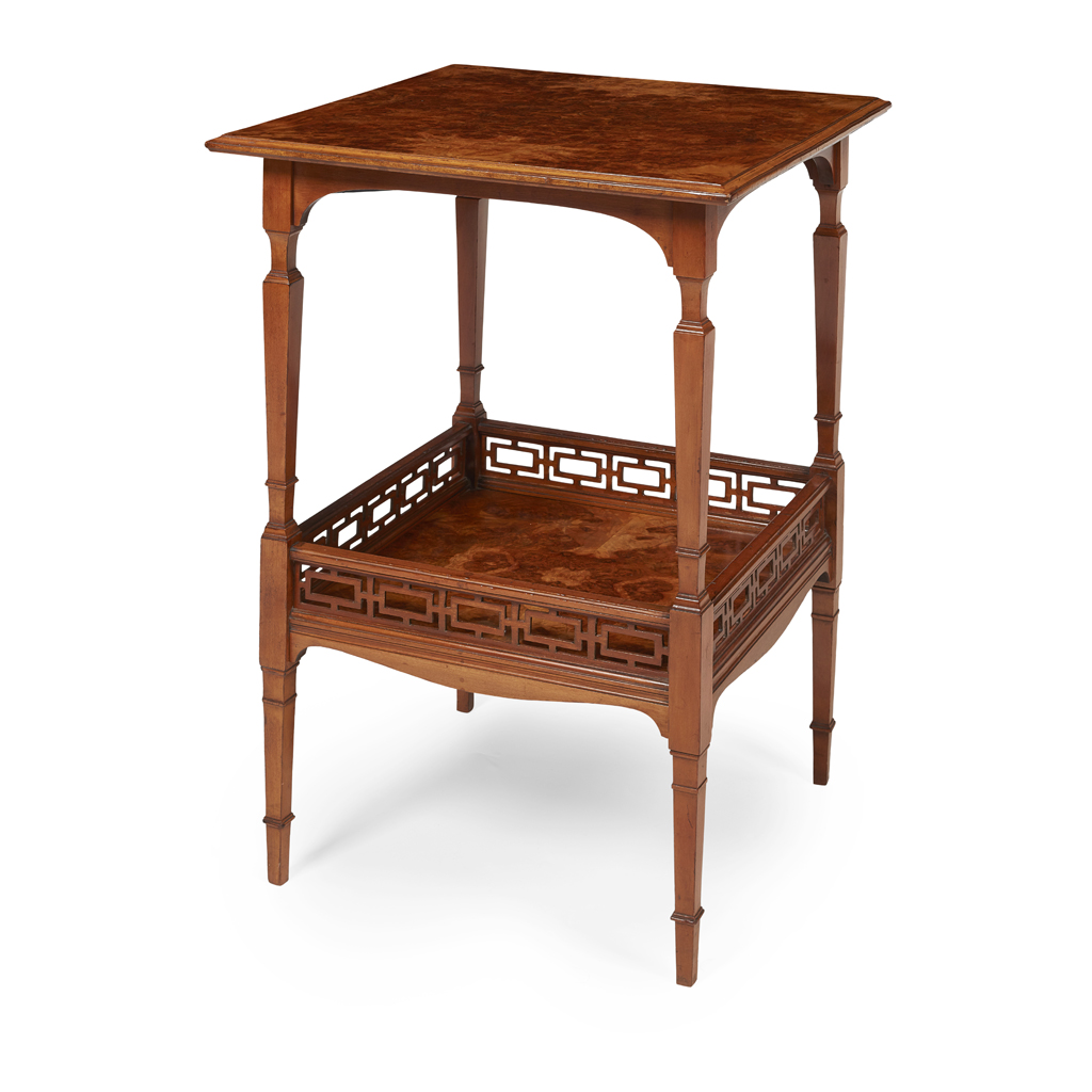AESTHETIC MOVEMENT WALNUT AND BURR WALNUT SIDE TABLE, CIRCA 1875