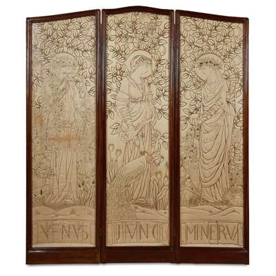 EMBROIDERED TRIPTYCH DEPICTING VENUS, JUNO AND MINERVA, CIRCA 1879
