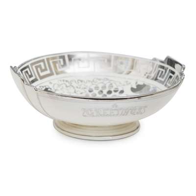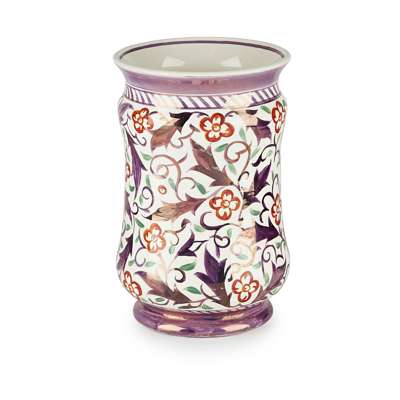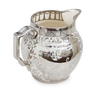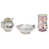 with repeating red flowerheads and purple leaves, maker’s marks and monogram, 21.5cm high; together with a GRAY’S POTTERY SILVER LUSTRE JUG, depicting a lion rampant, maker’s marks and monogram, 15cm high; and a BOWL, with Greek key border and fruiting vines in silver lustre, with inscription JUNE 10TH 1944/ GREETINGS, the underside marked DESIGNED & PAINTED AND PRESENTED TO VICAR F.A. NOBLE & MRS NOBLE. BY MRS M. FOREMAN ON THEIR WEDDING DAY JUNE 10TH 1944, 23.5cm diameter (3)