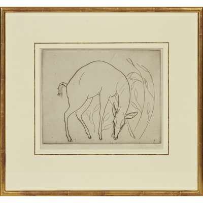 24cm x 23cm (9.5in x 9in) and another etching by John Skeaping ‘Reedbuck Feeding’ (2)