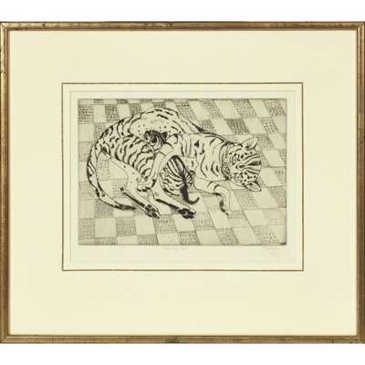 11.5cm x 12cm (4.5in x 4.75in) and another etching by Orvida Pissarro ‘Tabby Cat’ (2)