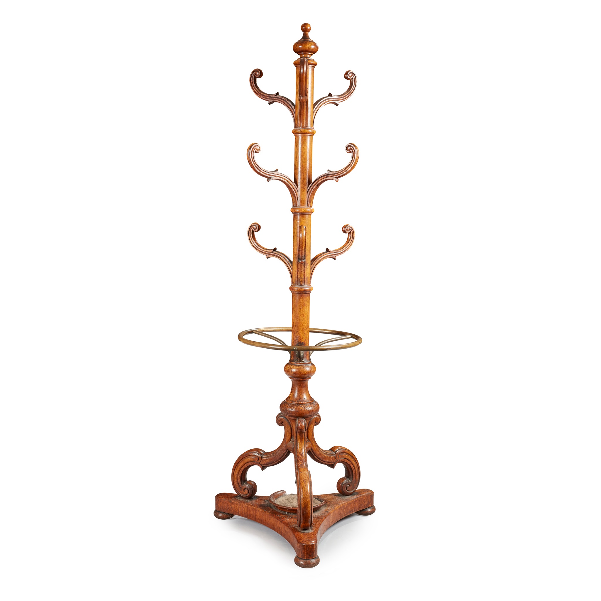 The central column with a turned finial and issuing nine scrolled arms, on a circular base fitted with a brass rail