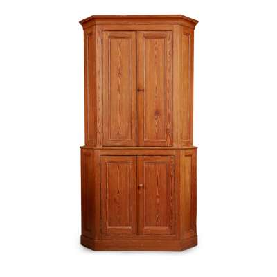 A LARGE VICTORIAN PITCH PINE CORNER CABINET