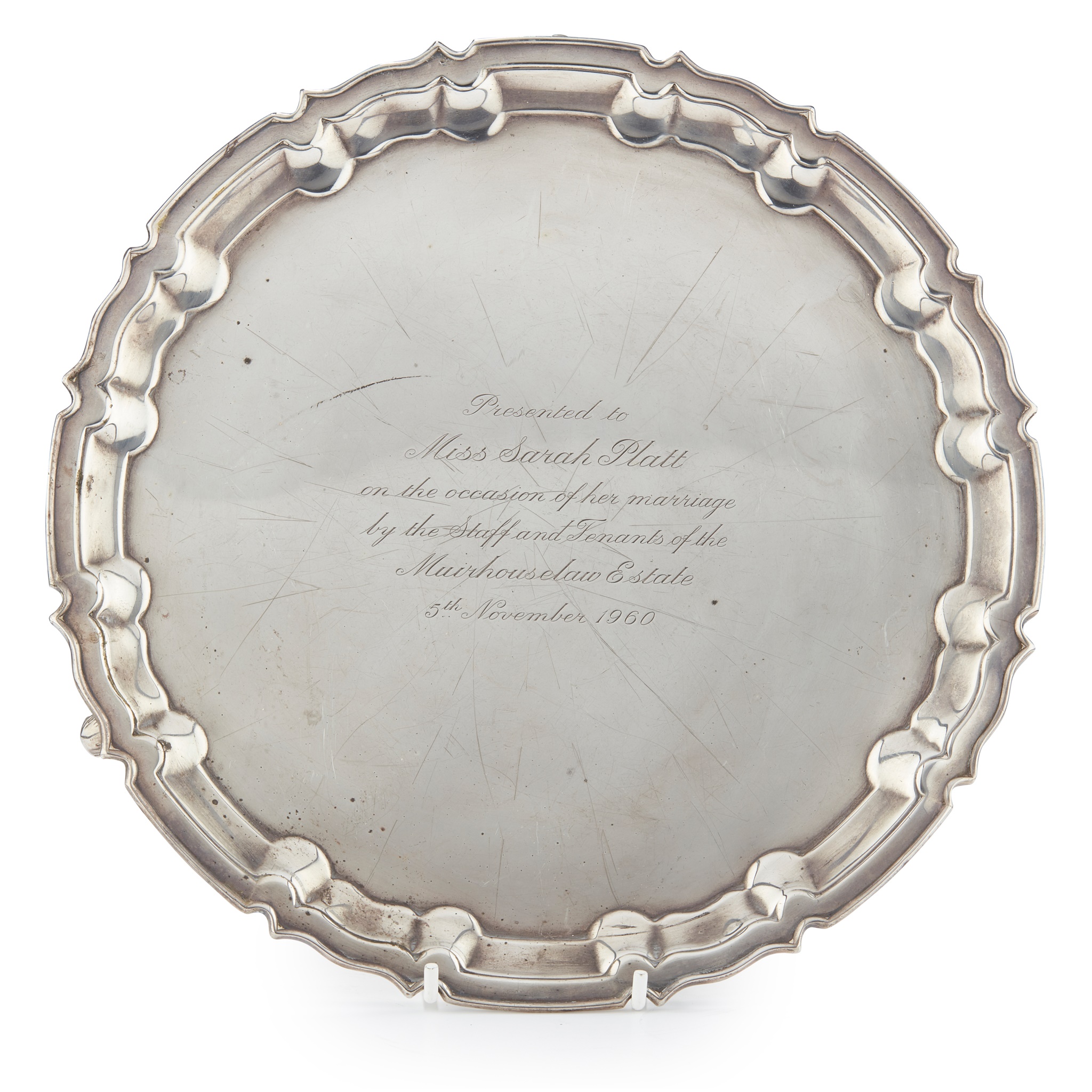 With moulded border, engraved to the flat: ‘Presented to Sarah Platt…November 1960’
