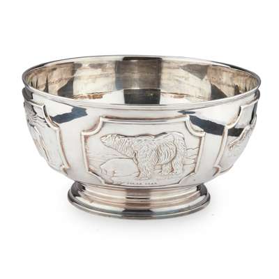 Of traditional form, the shaped rectangular panels, each chased with various wild animals after drawings by well-known animal painters, No. 52/2,000