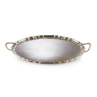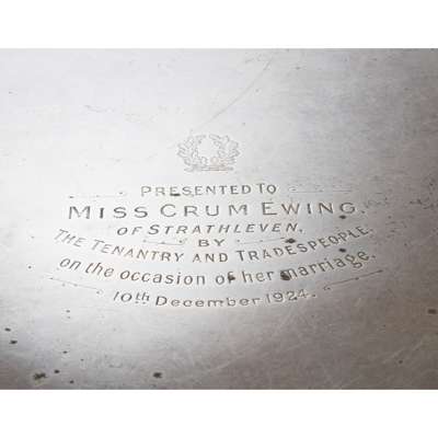 Of oval outline, with engraved presentation inscription to Miss Crum Ewing on her marriage, dated 1924, retailed by Thos Ross & Sons, Glasgow