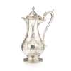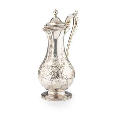 Of baluster form, later chased decoration with flowers and foliage, S scroll handle, the domed lid with urn finial