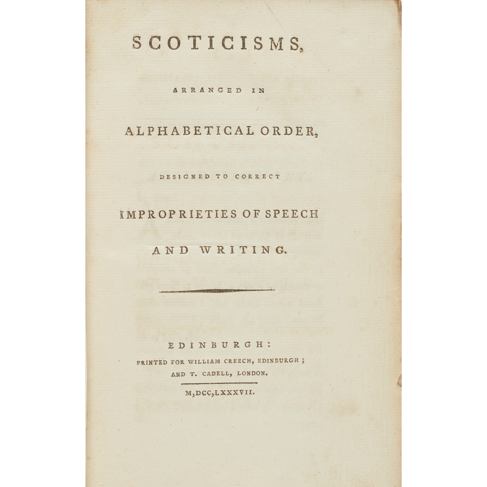 designed to correct Improprieties of Speech and Writing. Edinburgh: William Creech, 1787. 8vo, original boards, some manuscript annotations in an early hand