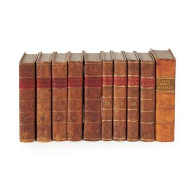 Thomson, Thomas A System of Chemistry. Edinburgh, 1807, 3rd edition, 5 volumes, 8vo, 4 plates, contemporary tree calf, red morocco labels; Chaptal, J.A.C. Elements of Chemistry. London, 1793, 3 volumes, 8vo, contemporary tree calf gilt; Lavoisier, A.L. Elements of Chemistry. Edinburgh, 1796, 3rd edition, 8vo, 13 folding plates, contemporary tree calf, spine gilt; Ure, Andrew A Dictionary of Chemistry. 1828, 3rd edition, 8vo, plates, contemporary half calf, head of spine slightly rubbed; sold not subject to return