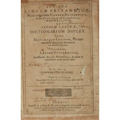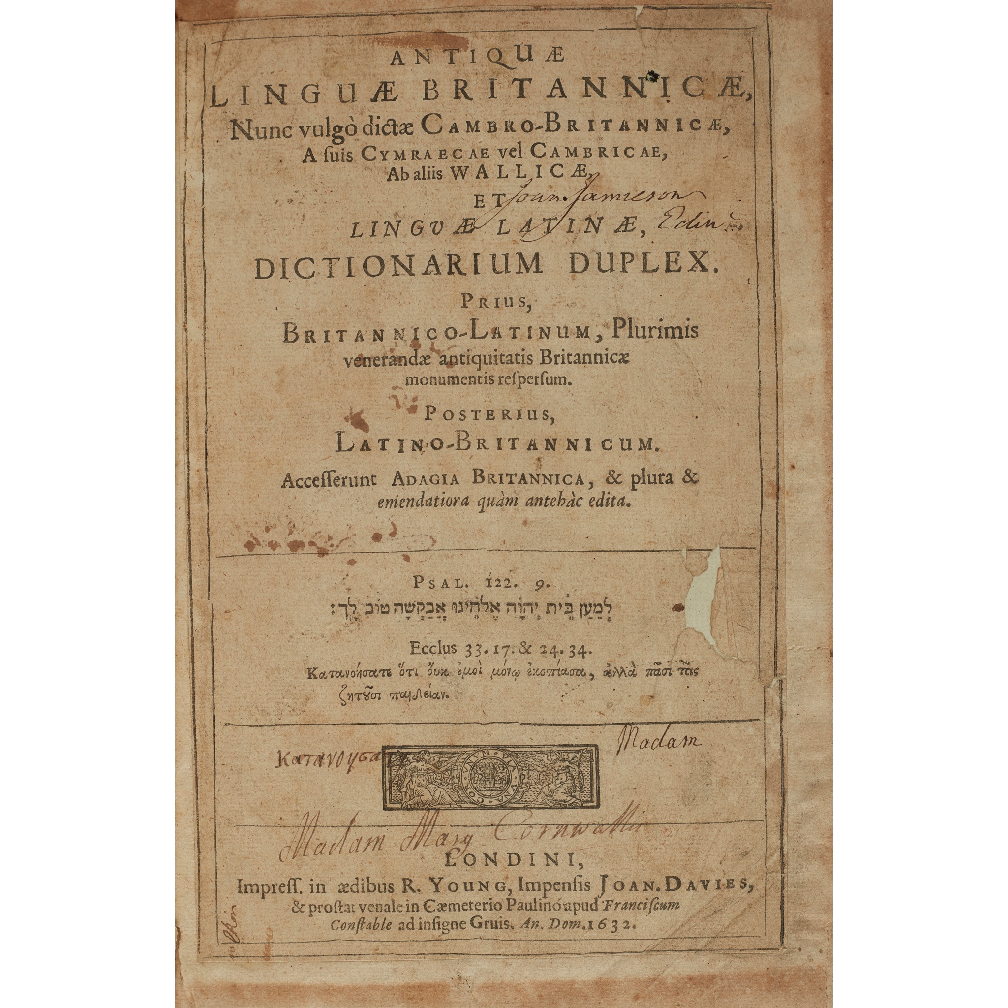 nunc vulgo dictae Cambro-Britannicae. London: R. Young, 1632, Folio, title with signature of John Jamieson cut down and mounted, also with small hole and early signature of Madam Mary Cornwall, 18th century calf, rebacked, foot of spine worn, occasional spotting