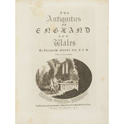 London: Hooper & Wigstead, [many n.d. but c.1795] 14 volumes, 4to, mixed edition, comprising: The Antiquities of England and Wales [8 volumes]; The Antiquities of Scotland, 1797 [2 volumes]; The Antiquities of Ireland, 1791 [2 volumes]; Military Antiquities, 1812 [2 volumes]; plates, contemporary calf with calf gilt labels to spines, sold not subject to return