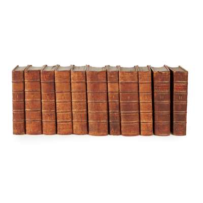 Fifth edition. London 1749-1756, volumes 1-10 bound in 11, comprising volumes 1-3 fifth edition, volumes 4-5 third edition, volume 6 & 7 dated 1734, volumes 8 & 9 dated 1747, volume 10 is dated 1756, plates, some browning and spotting, a few tears, contemporary calf, worn, lacking labels, some joints split; sold not subject to return