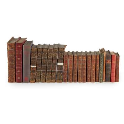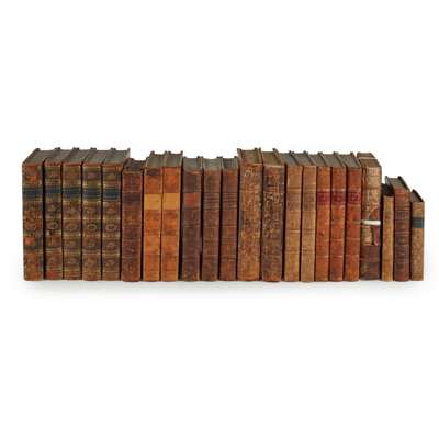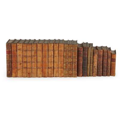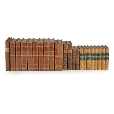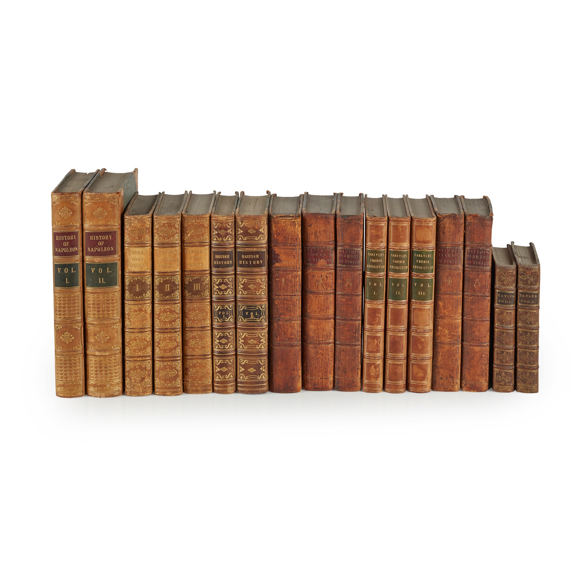 Horne, R.H. The History of Napoleon. 1841, 2 volumes, 8vo, contemporary half calf gilt; Turner, Sharon The History of the Anglo-Saxons. 1830, 3rd edition, 3 volumes, folding map, contemporary calf gilt; Wade, John British History Chronologically arranged. 1839, 2 volumes, 8vo, contemporary half calf gilt; Carlyle, Thomas The French Revolution. [c.1885], 3 volumes, contemporary calf gilt; Millot, l'Abbé Elements of General History. 1778, 5 volumes, contemporary calf, rubbed; Lloyd, L. Field Sports of the North of Europe. 1830, 2 volumes, plates, contemporary half calf, lacks labels; The History of the Life and Reign of Peter the Great. 1740. Second edition, 12mo, frontispiece, contemporary calf, early ownership inscriptions to title, title torn without loss; Crevier, J.B.L. The History of the Roman Emperors. 1814, 10 volumes, contemporary diced half calf; Ferguson, Adam The History of the Progress and Termination of the Roman Republic. 1813, 5 volumes, 8vo, folding maps, contemporary calf; Gibbon, Edward The History of the Decline and Fall of the Roman Empire. 1838, 8 volumes, plates, maps, contemporary calf, neatly rebacked, g.e.; Mitford, William The History of Greece. 1835, 8 volumes, 12mo, engraved titles, contemporary calf, spines gilt; and others, similar; sold not subject to return (quantity)