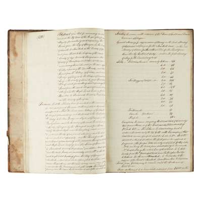 Small folio, printed and in manuscript from 1774 to 1819, comprising 17 manuscript and 34 printed leaves (many of the printed leaves with manuscript headings), 19th century half calf