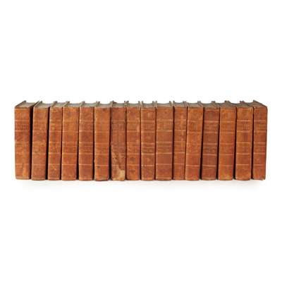 London: Longman, 1808 [-14]. 17 volumes, 4to, plates and maps, some folding, contemporary half calf, spines gilt, rubbed, a few joints split or splitting, volume 8 spine worn, volume 7 tear to head of spine, occasional light spotting; sold not subject to return