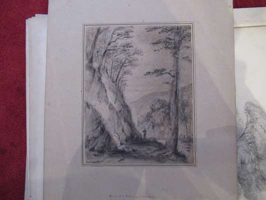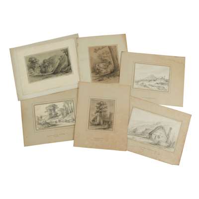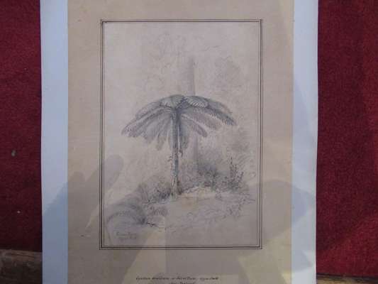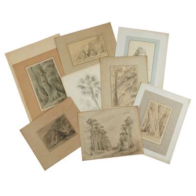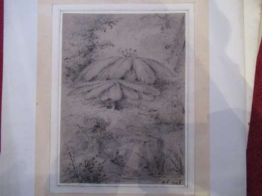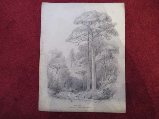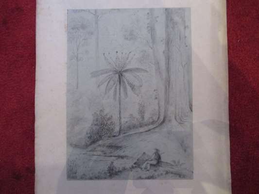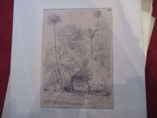 many captioned, including views of Browns Island, Hutt Road, Hawkshead in 1846, Bridge over Pakarati River, fern opposite Hawkshead, West Point of Browns Cove, Towa trees, Remarkable Rota Tree, White Pines, Silverbark Gum, Silver Fern Upper Hutt, New Road near Mungoroa river, Mace Pines, Native Hut and Black Fern, Upper Hutt River, Round the 2nd Hugg gorge - birch trees, Black Tree Fern, Sawyer's Cottage, mostly c. 11 x 10 cm, some captioned, a few initialled or signed (quantity)