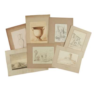 made in 1807-1812. 4to, title page, sectional title, 25 mounted sketches, mostly pencil, a few ink wash, c. 21 x 29cm, c. 10 small ink sketches of Sicily; 6 pencil sketches of trees and a house, captioned 'Rio de Janeiro' 1841, c. 20 x 27cm, one initialled, some spotting