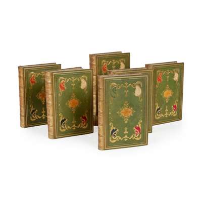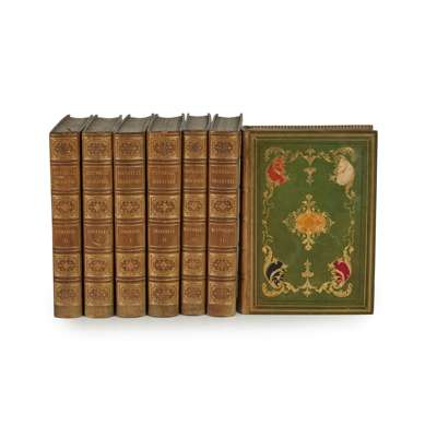 19 volumes, 8vo, contemporary diced russia, engraved portrait, spines faded; Shakespeare, William The Pictorial edition of the Works. edited by Charles Knight. [n.d.], 7 volumes, 8vo, contemporary green morocco gilt with black, red, brown, olive and cream onlays, spines slightly faded; sold not subject to return