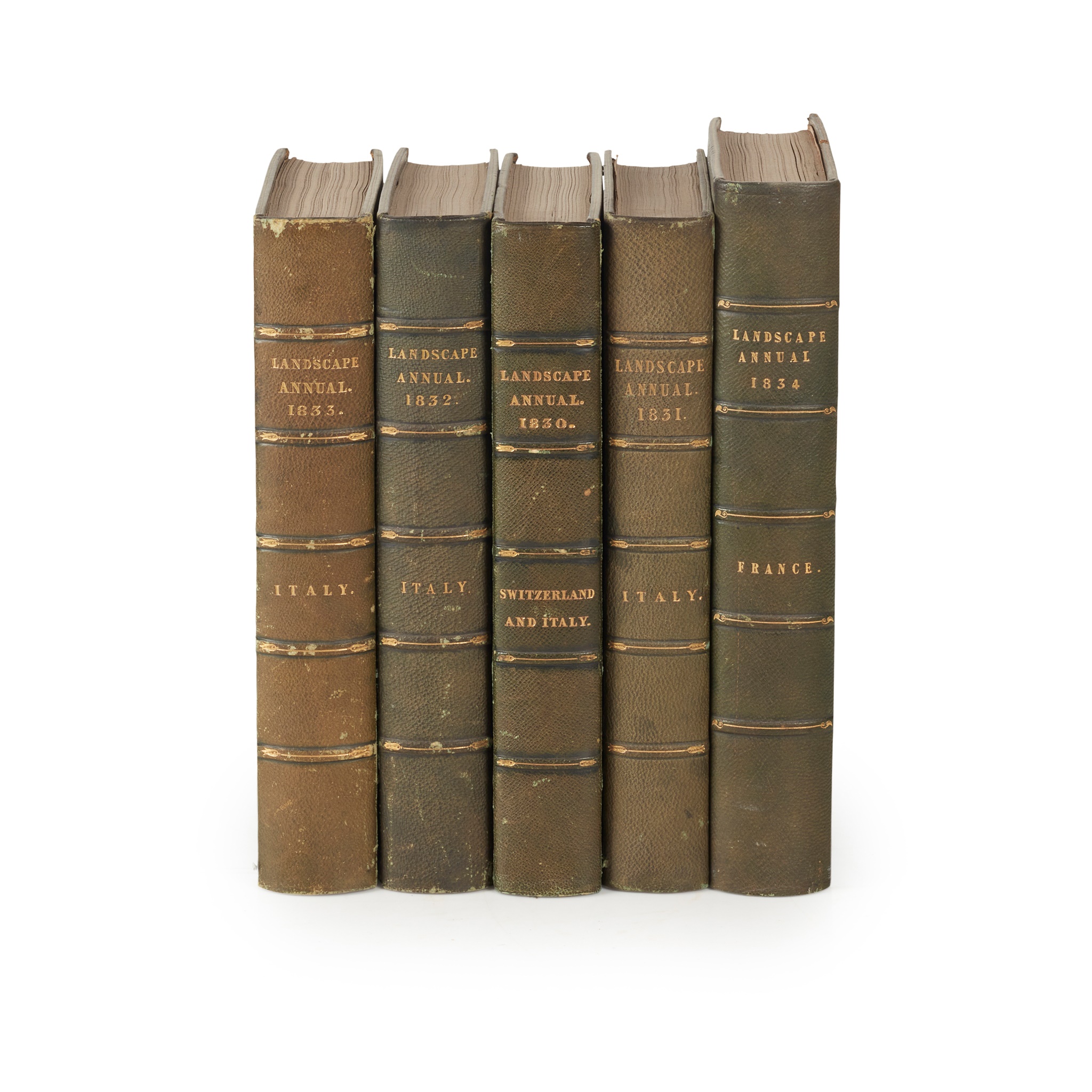 Roscoe, T. The Tourist in Switzerland and Italy, 1830; The Tourist in Italy, 1831, engraved title page; The Tourist in Italy. 1832, engraved title page; The Tourist in Italy. 1833, engraved title page; The Tourist in France. 1834, engraved title-page, frontispiece partly detached; engraved plates, tissue guards, uniform green morocco gilt, t.e.g., occasional spot, Italy 1833 volume very slightly rubbed; sold not subject to return