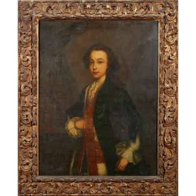 THREE QUARTER LENGTH PORTRAIT OF A YOUNG MAN IN BLUE FROCK COAT