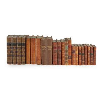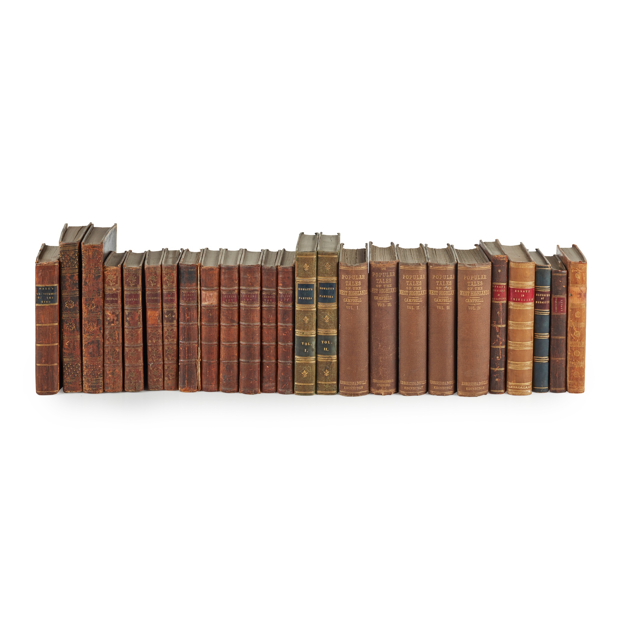 containing The Arabian Nights. Edinburgh, 1812, 3 volumes, 8vo, contemporary calf gilt; The Chinese Spy London, 1765. 6 volumes, 12mo, contemporary calf, rubbed, a couple of boards detached; Chrysal or the Adventures of a Guinea... by an Adept. London, 1775. 4 volumes, 12mo, contemporary calf, rubbed; Howitt, William Pantika, or Traditions of the Most Ancient Times. 1835, 2 volumes, 12mo, contemporary green half calf gilt; Burke, Edmund The Sublime and the Beautiful. Oxford, 1796. 12mo, contemporary calf; Elegant Extracts 1808, 4 volumes, 8vo, engraved titles, contemporary tree calf, spines gilt, lightly rubbed; Swift, J. A Tale of a Tub... thirteenth edition. Glasgow, 1753. 12mo, engraved plates, contemporary calf, joints cracked; Elements of Criticism Edinburgh, 1765. Third edition, 2 volumes, contemporary calf; Campbell, Major Walter The Old Forest Ranger or Wild Sports in India. 1853. 8vo, engraved title & plates, contemporary brown morocco, t.e.g.; and various others, sold not subject to return (quantity)