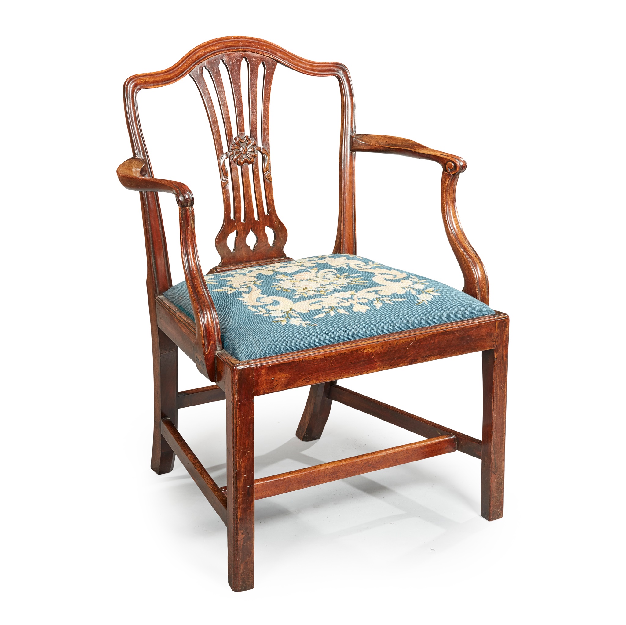 A GEORGE III MAHOGANY OPEN ARMCHAIR