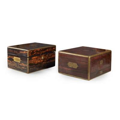 in coromandel and rosewood, one with retailer's label 'I Turrill, London', both lacking interior fittings