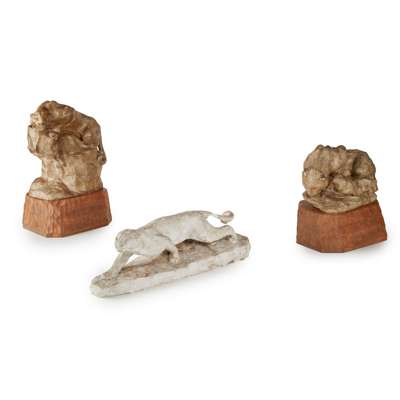 In various poses, one signed 'T M Swan', another indistinctly signed, the third probably Lilian Hamilton, two on wooden plinths