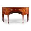A GEORGIAN STYLE MAHOGANY AND SATINWOOD CROSSBANDED BOWFRONT SIDEBOARD