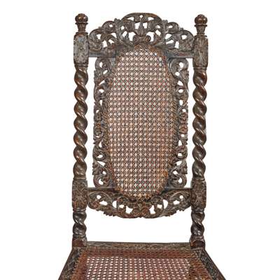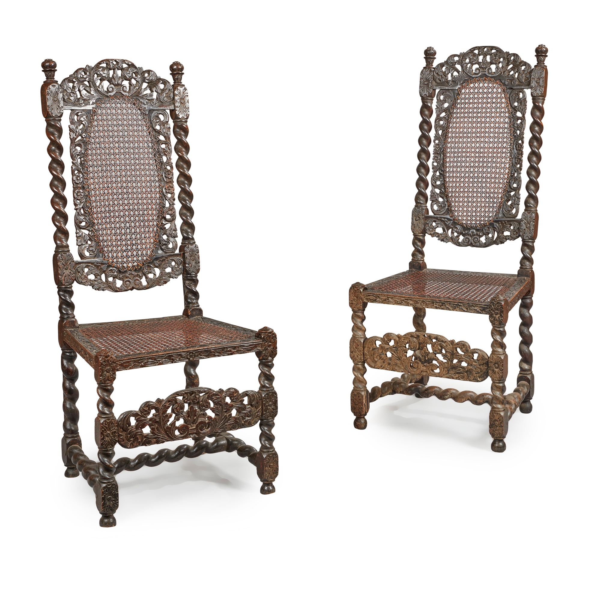 A PAIR OF CHARLES II STAINED AND EBONISED BEECH CHAIRS
