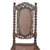 With carved and pierced cresting above caned backs and seats, on carved legs joined by stretchers