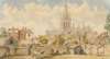 FIGURES AND CHICKENS IN A YARD BEFORE THE CHURCH OF ST NICHOLAS, GREAT YARMOUTH