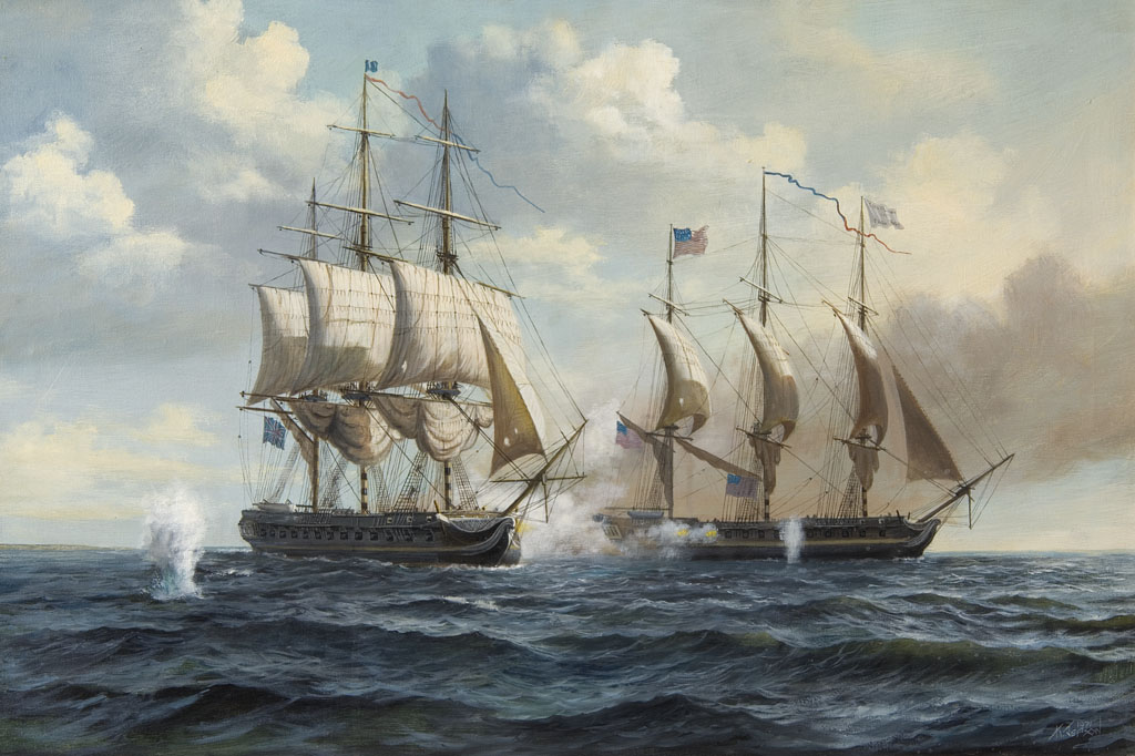 THE BRITISH FRIGATE "SHANNON" FIGHTING THE AMERICAN FRIGATE "CHESAPEAKE", 1 JUNE