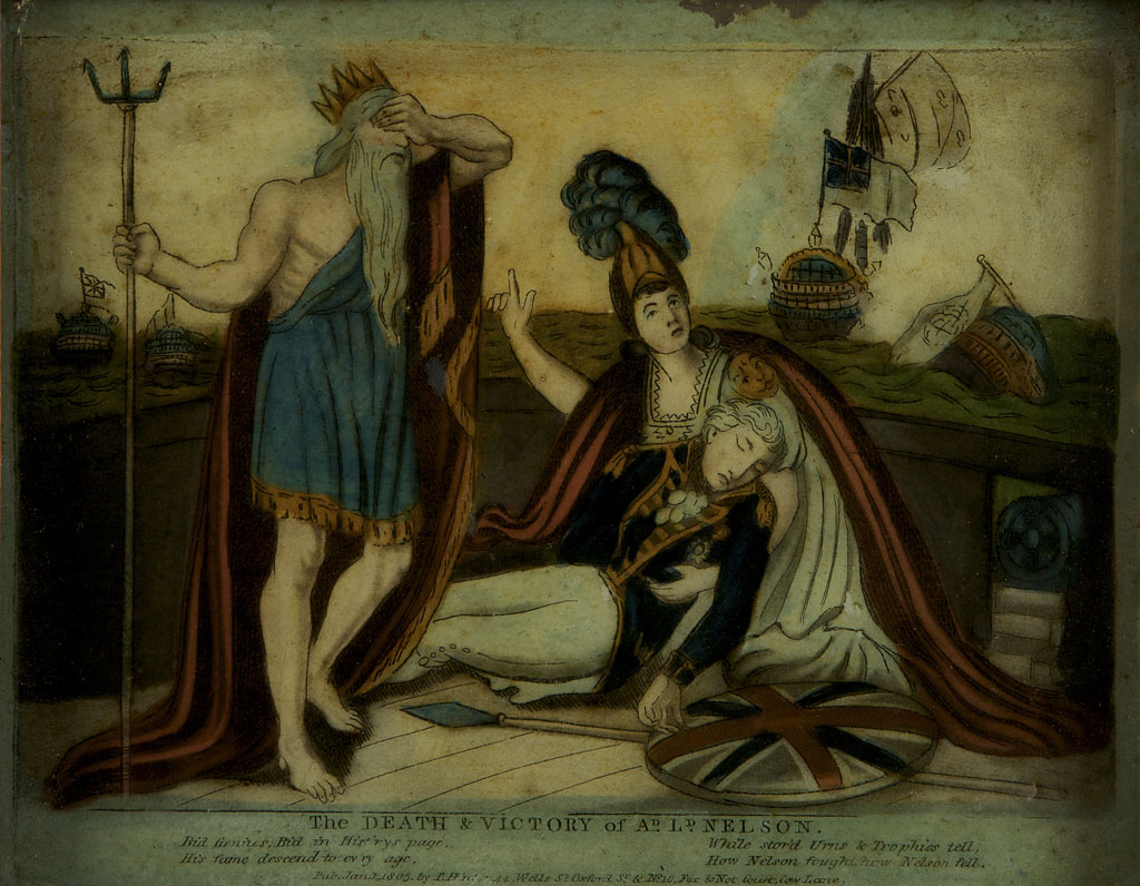 The death & victory of Ad. Ld. Nelson. London: I. Hinton, Jan.1, 1805 [i.e. 1806]. Framed, small size.