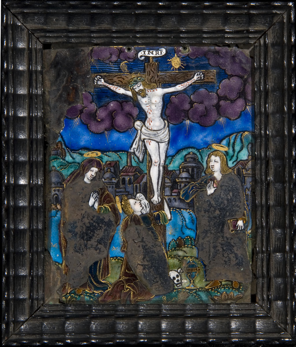 A Limoges enamel panel of the Crucifixion, 16/17th century