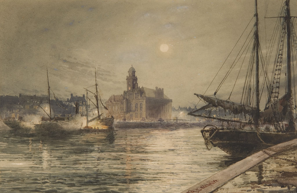 'THE QUAY, GREAT YARMOUTH BY MOONLIGHT'