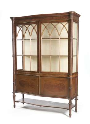 A good Edwardian mahogany and inlaid serpentine display cabinet, circa 1910