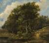 SHEPHERD AND HIS FLOCK IN A WOODLAND LANDSCAPE