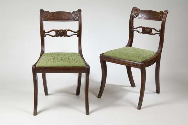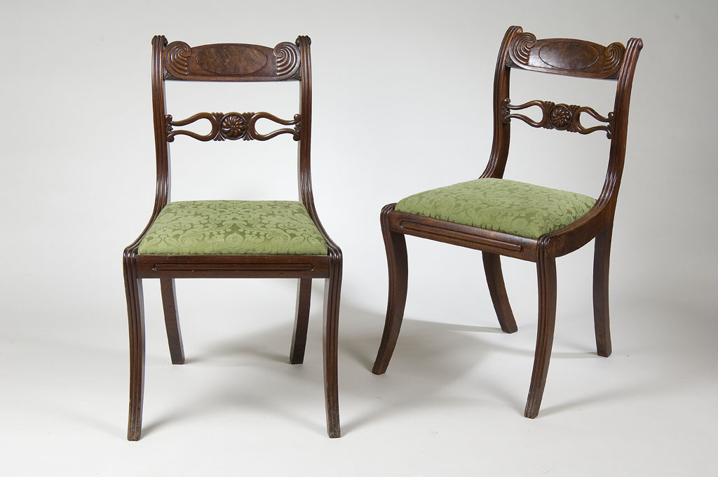 with bar backs, drop-in seats and reeded sabre legs
