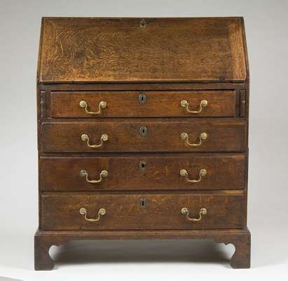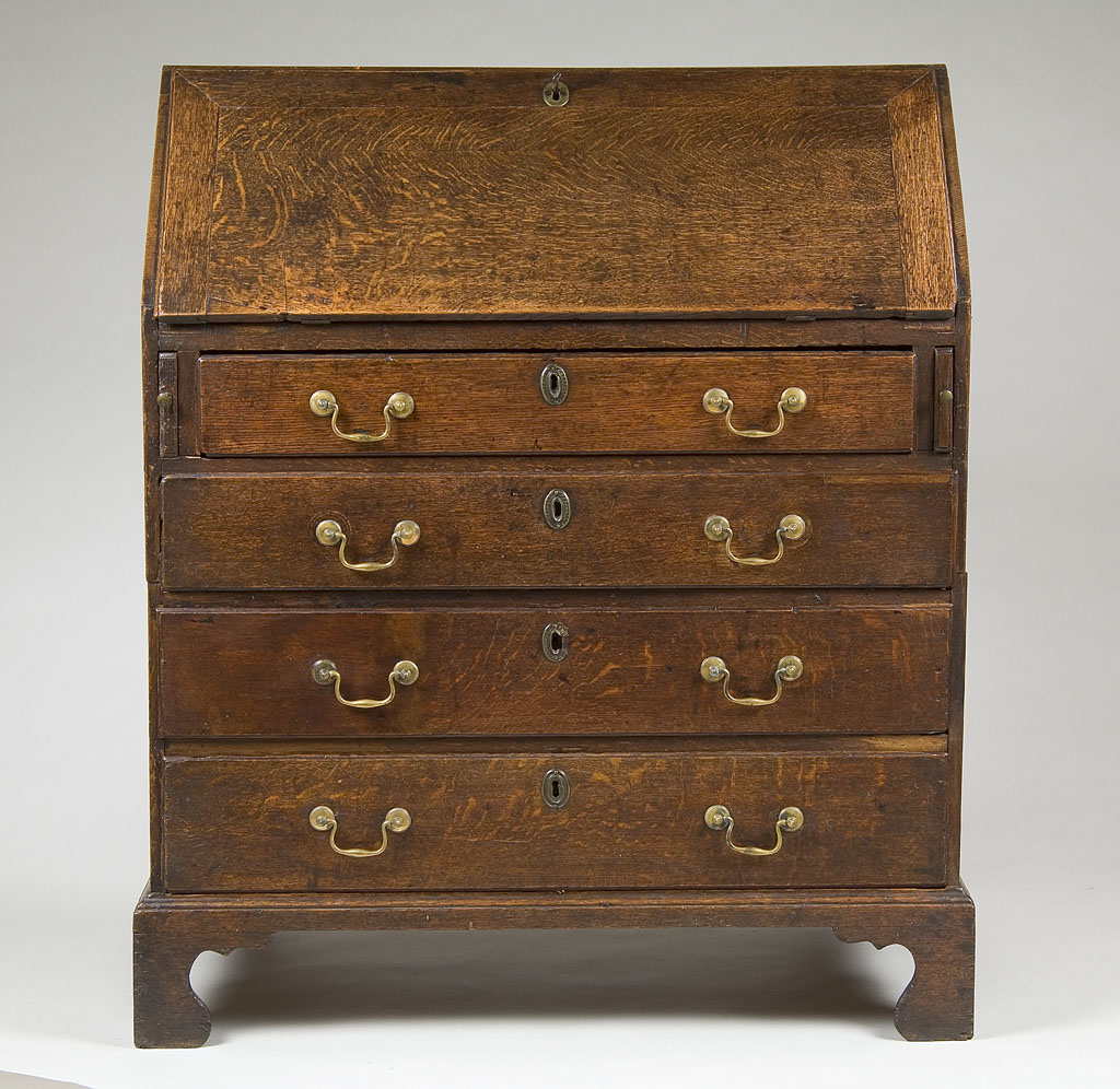 slope front and fitted interior, with four graduated drawers, on bracket feet