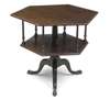 the two hexagonal tiers with a turned column support, on a tripod base with pad feet