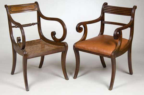 Two Regency mahogany open armchairs, circa 1815