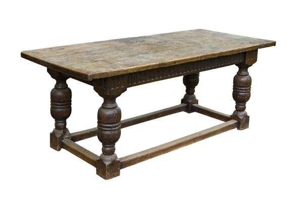 An oak refectory table, 17th century elements