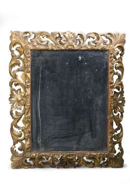 the bevelled plate within an ornate openwork foliate scroll carved frame