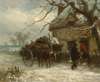 FIGURES WITH HORSE AND CART BEFORE A SNOW COVERED COTTAGE