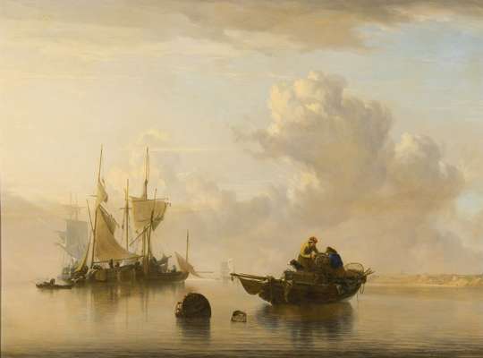 Note: A critical report of 1829 might well have been written about these paintings - 'This artist has established, and most deservedly so, an excellent reputation as a marine painter, his subjects are generally finely chosen, and painted with all the truth and transparency of beautiful nature; the grouping of his vessels display an admirable taste, and they are embellished with the most correctly drawn figures, highly characteristic of the station they occupy.'