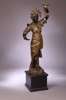 Italian, circa 1900, depicting a Nubian girl, her costume in polychrome, holding aloft a cornucopia with light fitting on a plinth, adapted for electricity