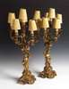 French, late 19th century, each modelled with foliate scrolling arm held by a putto resting against a tree stump and on a pierced Rococo base (adapted for electricity) (2)
