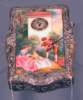 probably Swiss, the cover set with a watch within a polychrome enamel scene in the Watteau style, within a scroll border, the side and base similarly incised,