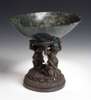 the moss agate oval bowl supported by two kneeling angels, back to back, on a circular base with precious and semi